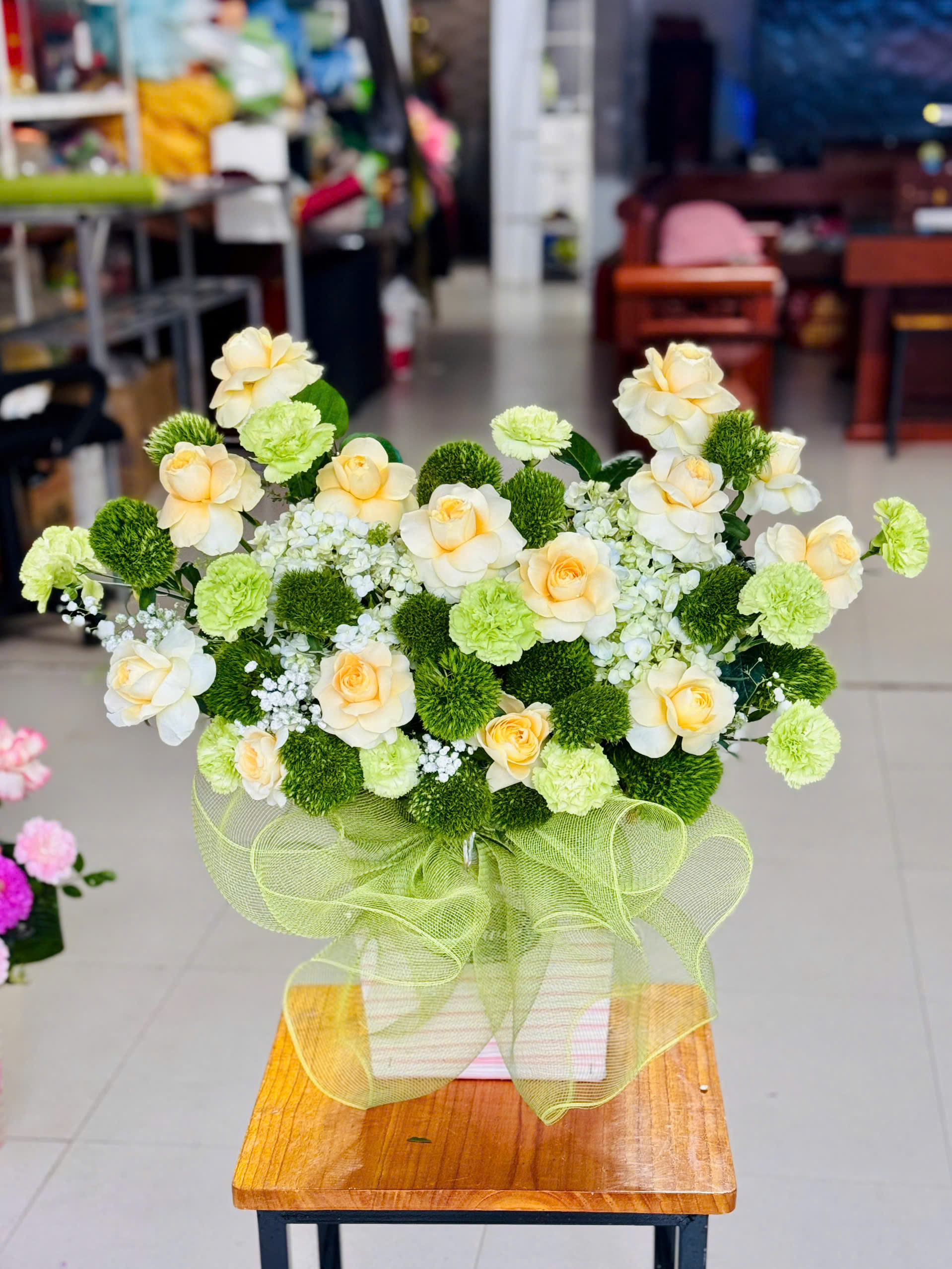 hoa chúc mừng tone xanh lá