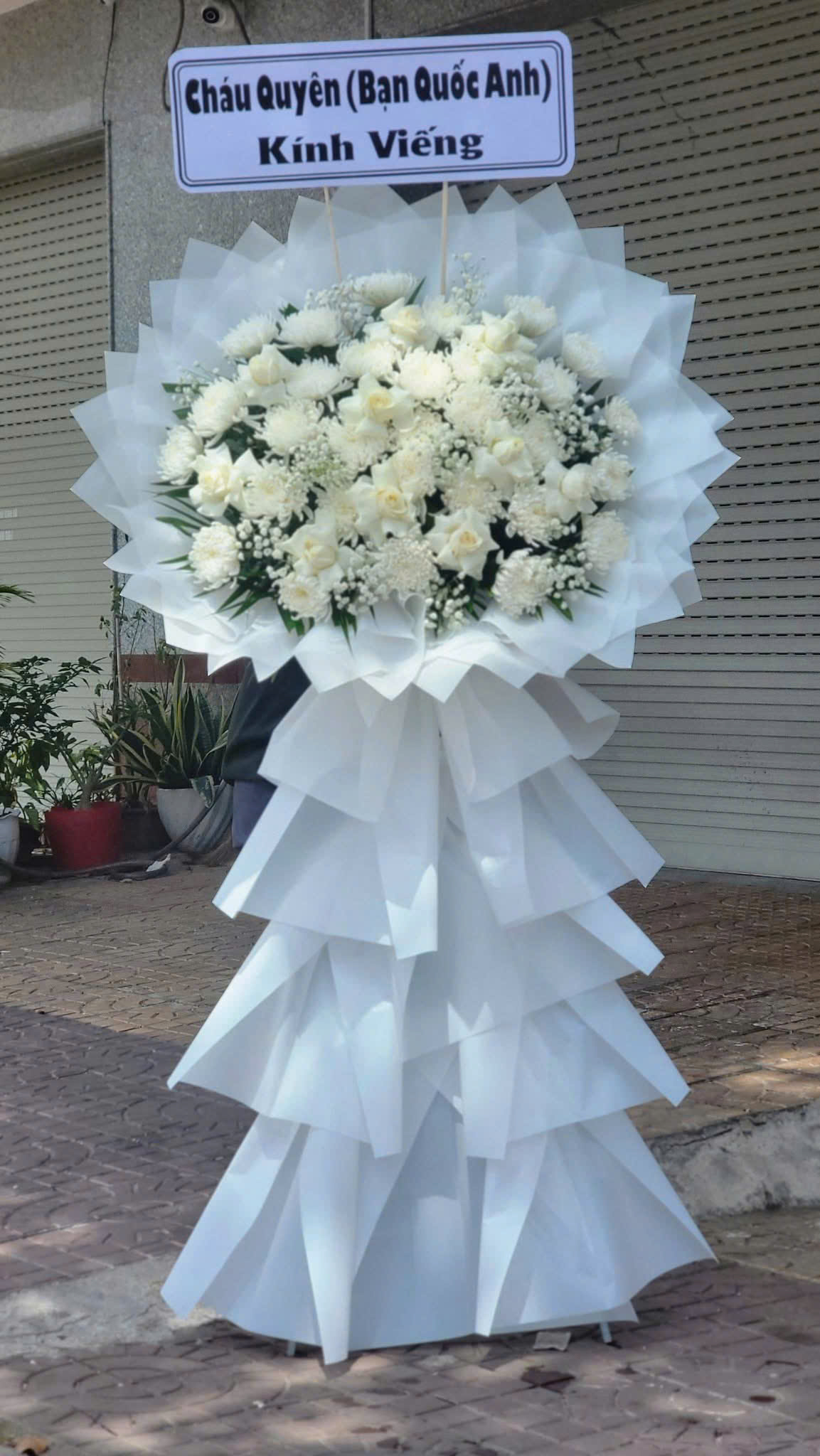 hoa tang lễ 1 tầng tone trắng