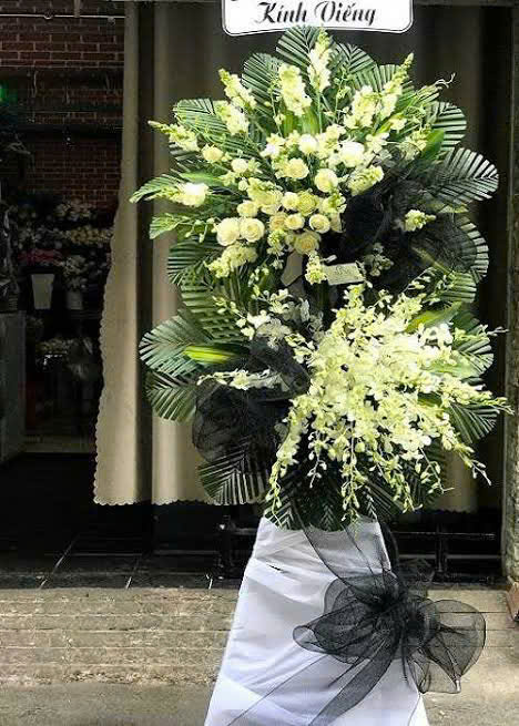 hoa tang lễ 2 tầng tone trắng đen